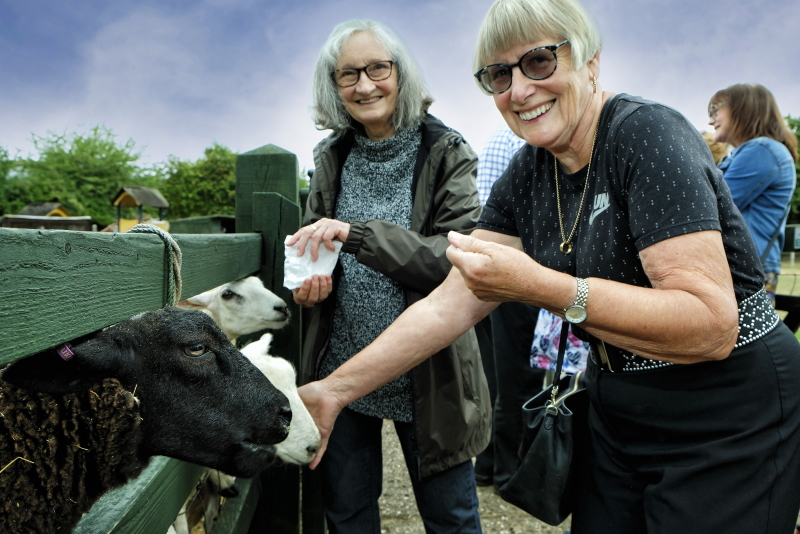 Friends reunited: Today, Madeline, left, and Sandra, right, enjoying a trip to a local farm organised by Nottingham Trent Oddfellows.
